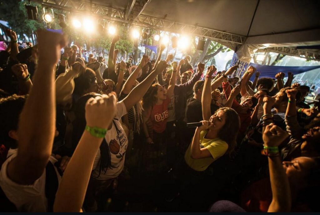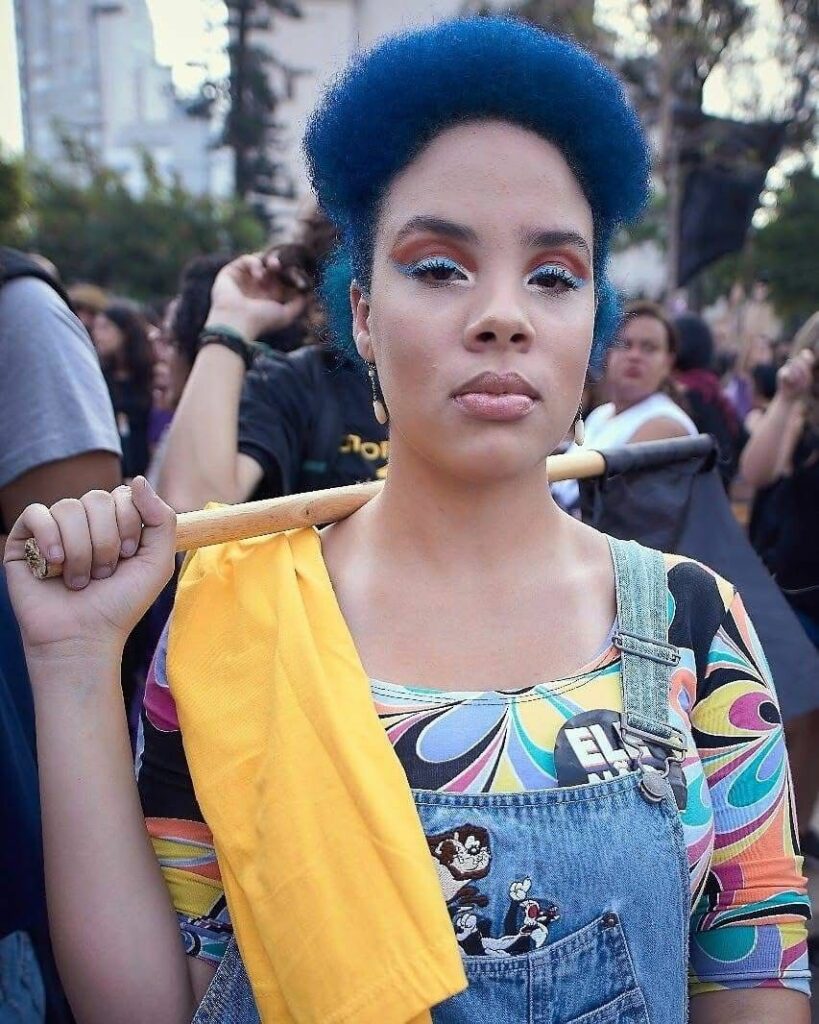 A ocupação foi um grande momento de descobertas na minha vida. A escola se tornou refúgio de muitas coisas tortas que aconteciam no trabalho e na família. Nas ocupações, eu pude ser eu mesma! Certamente, o que marcou e deu uma virada na minha cabeça, foi vivenciar a arte no cotidiano, conhecer artistas independentes de quebrada. Foi ali que ganhei a referência que era possível, eu, favelada, mulher e sapatão viver de música. Que a arte não era só um hobby ou coisa de gente com dinheiro, sabe? Era pra mim também!