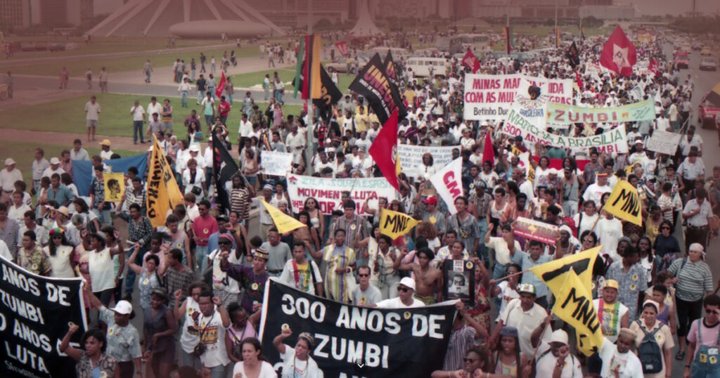 Realizada em 20 de novembro de 1995 (Dia da Consciência Negra), em Brasília, a Marcha Zumbi dos Palmares marcou os 300 anos da morte de Zumbi, lembrado como herói nacional e símbolo da resistência, e foi um divisor de águas na luta do movimento negro no Brasil. Organizada por diferentes setores sociais — sindicatos, organizações negras, grupos de mulheres e ativistas de diversas regiões — foi um ato de indignação e protesto contra as condições de exclusão, discriminação e violência vividas pela população negra.