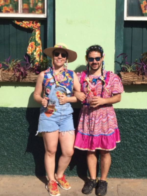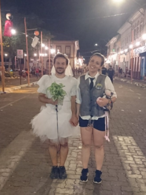 Continuamos voltando para o carnaval de São Luiz do Paraitinga e Fernando continuou organizando a casa. Até que, em 2017, eu subi no palco da nossa banda preferida, Estrambelhados, e o pedi em casamento em pleno carnaval. Nos casamos em setembro de 2018 na cidade em que tudo aconteceu.