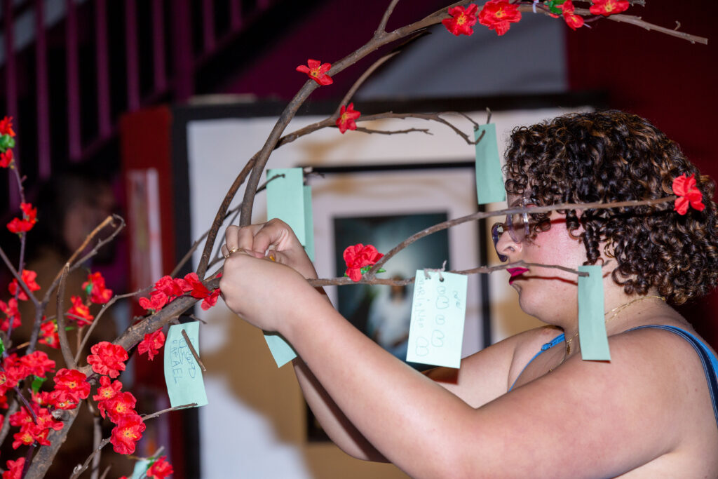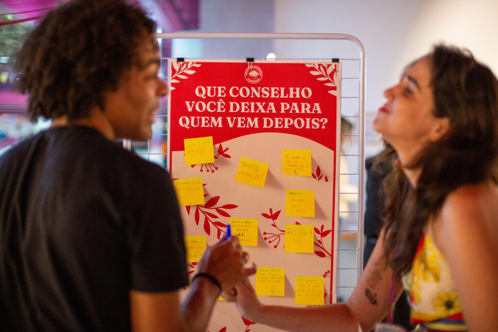 Isabelle explica que um dos objetivos da mostra é motivar o público a pesquisar sobre sua própria ancestralidade, e a partir disso, encontrar formas de honrá-la. Por essa razão, há algumas obras interativas na exposição, como a “Antes de mim, existem raízes”, em que as pessoas são convidadas a preencher folhas de papel com o nome de suas ancestrais e pendurá-las nos galhos de uma árvore. Além disso, ao final da visitação há um painel em que o público pode anotar um conselho para quem vem depois.