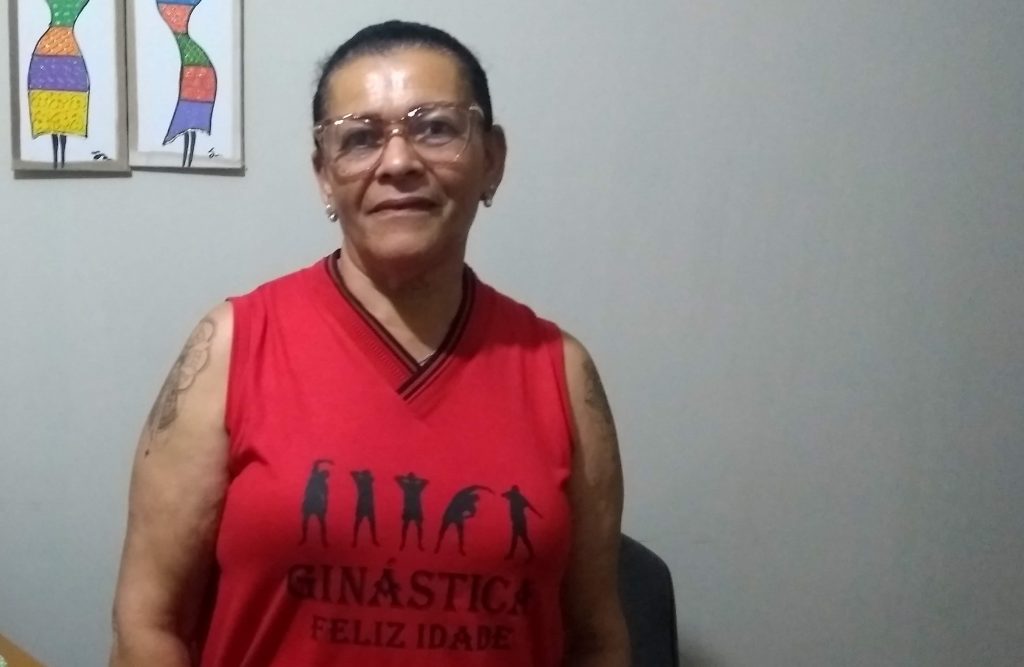 Aposentada, trabalhou a vida toda na área de limpeza de diferentes empresas. Hoje, aos 65 anos, divide sua rotina com os afazeres domésticos e com diversas atividades que realiza no bairro. “Ficar dentro de casa o tempo todo dá muito nervoso”, confessa.