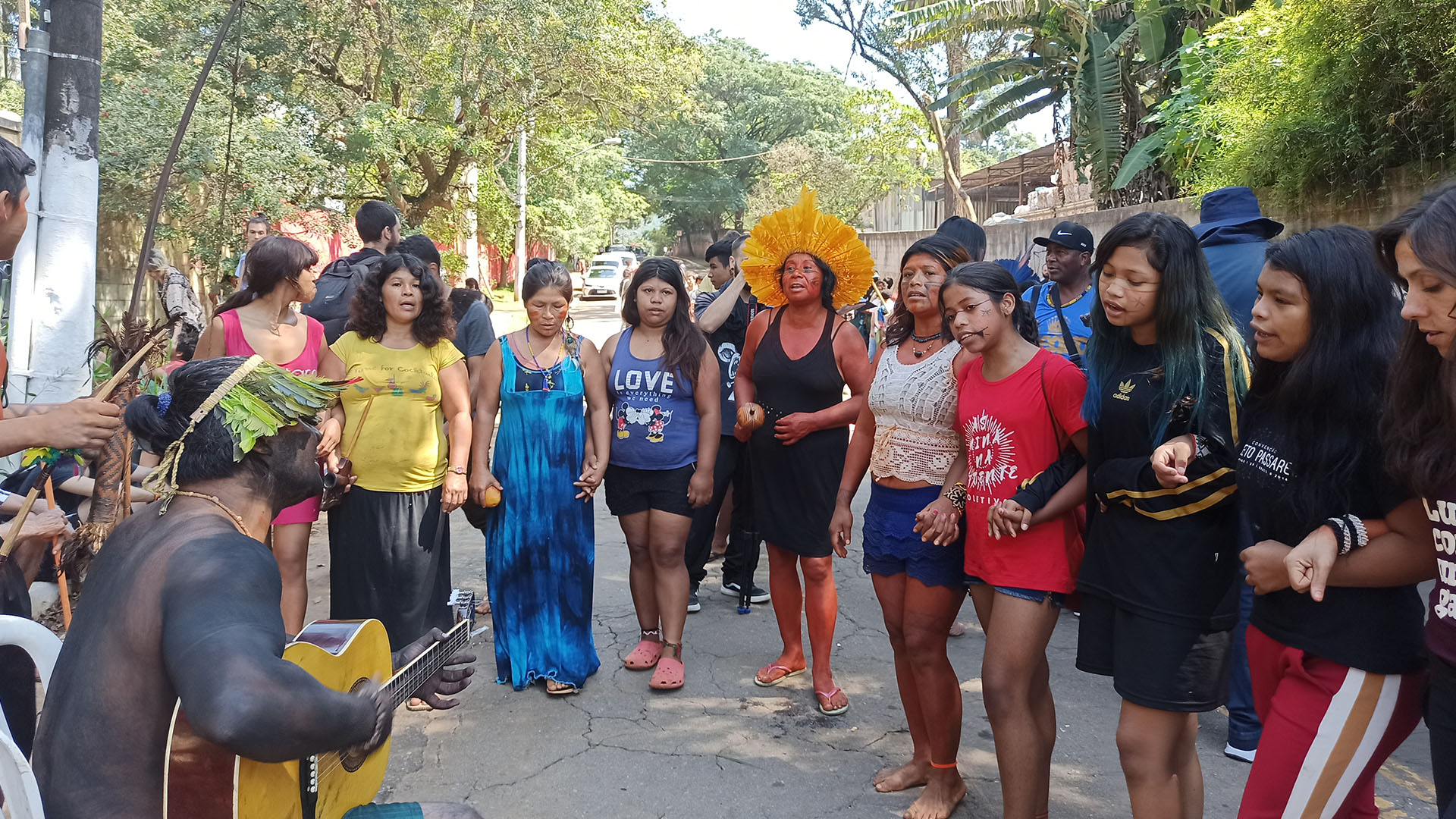 Do outro lado da cidade, extremo da zona sul, a indígena Marisa Kerethú, 49, me chama a conhecer a Aldeia Tenondé Porã, através de áudios de Whatsapp. Explica que a união de todas as terras indígenas da região - incluindo o conjunto de diferentes aldeias - reúne cerca de 300 famílias.