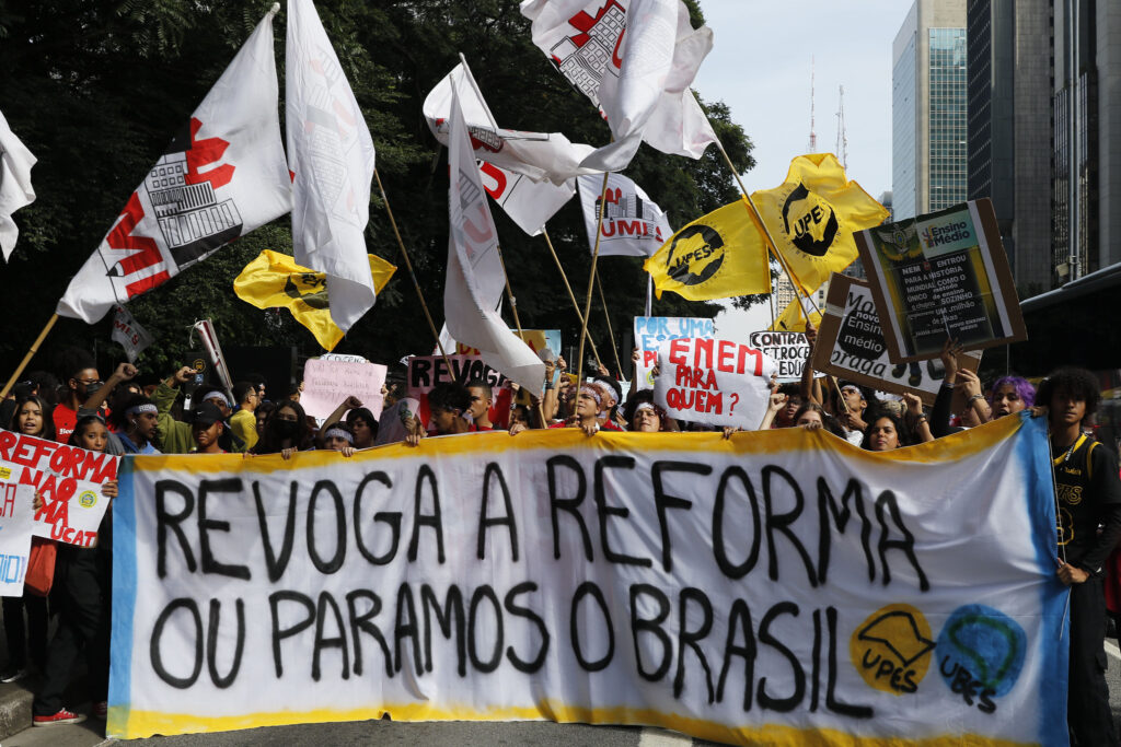Nesta quarta-feira (15), milhares de jovens protestaram pela revogação do Novo Ensino Médio (NEM). As manifestações ocorreram em 51 cidades do país e foram convocadas pela União Brasileira dos Estudantes Secundaristas (UBES) e a União Nacional dos Estudantes (UNE). Além da extinção do modelo atual, o objetivo das entidades é a reconstrução da escola pública a partir de um debate com a sociedade.