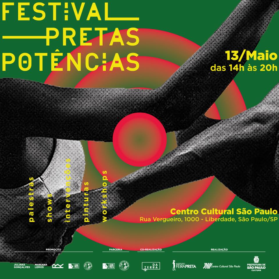 No próximo domingo (13), a partir das 14h30, acontece o Festival Pretas Potências. A proposta do evento, que ocupa o Centro Cultural São Paulo na data lembrada oficialmente pelo dia da abolição da escravidão, tem a intenção de ressaltar a criatividade e inventividade da população negra brasileira nas últimas décadas.