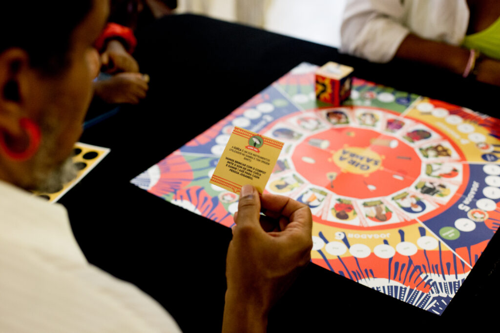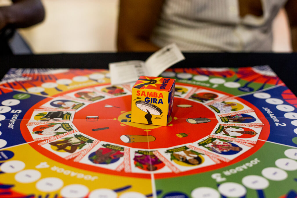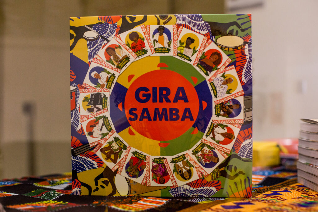 Um jogo de tabuleiro cooperativo que apresenta a trajetória do samba e a história de mulheres sambistas. Uma brincadeira sem um só vencedor, mas que possibilita a troca de “axé” – pontuação do jogo – entre os participantes. Essa é a proposta do jogo Gira Samba, criado pela pedagoga e pesquisadora de relações étnico-raciais Agnis Freitas.
