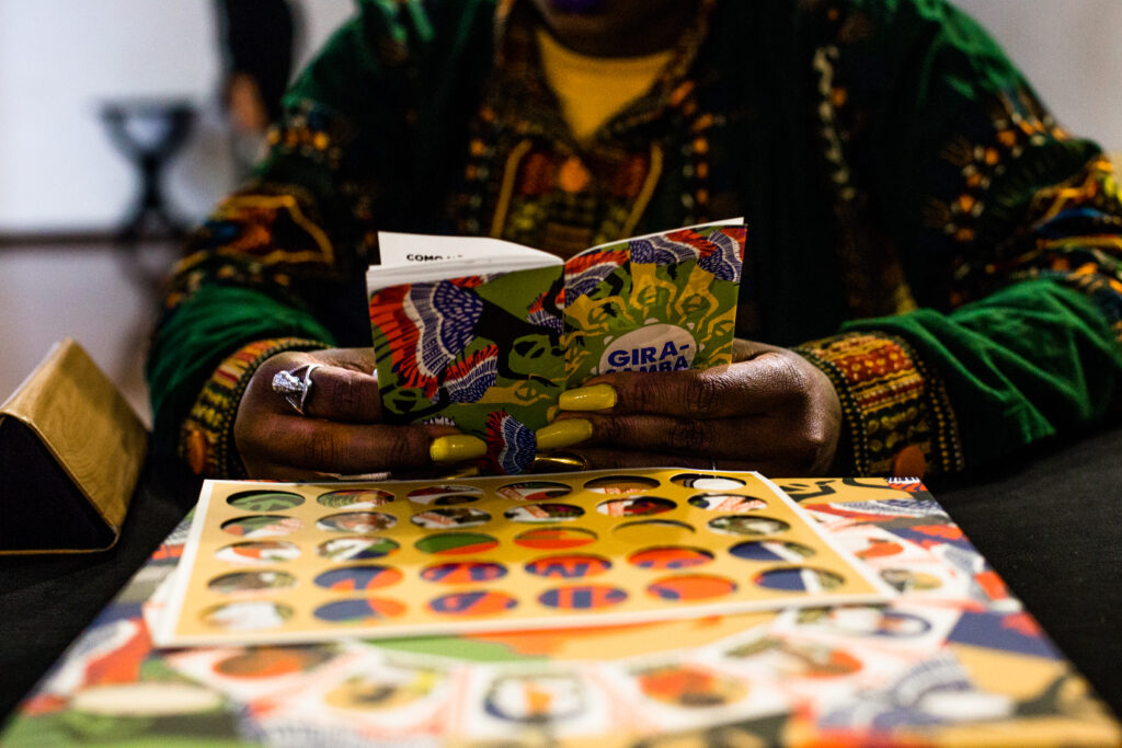 “Essas mulheres são a sorte do jogo, todas as cartas delas envolvem ganhar axé. O jogo também tem cartas que contam desafios históricos do samba e cartas do samba gira, que são de brincadeiras e convites de pesquisa sobre samba”, explica.