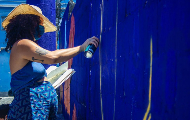 Laís grafita desde 2007 nos muros da capital paulista. Moradora da zona leste de São Paulo (SP), ela também é estilista, artista visual e arte educadora. Fundadora da marca DA LAMA, a artista inspira suas peças na ancestralidade africana e na arte manual indígena brasileira.