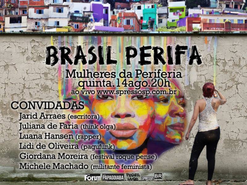 O programa Brasil Perifa se propõe a debater diversos temas ligados às periferias e fazer a conexão entre as quebradas do país e é transmitido ao vivo, às 20h, nos sites SPressoSP (www.spressosp.com.br) e SPressoRJ (www.spressorj.com.br), que são iniciativas regionais da Revista Fórum.