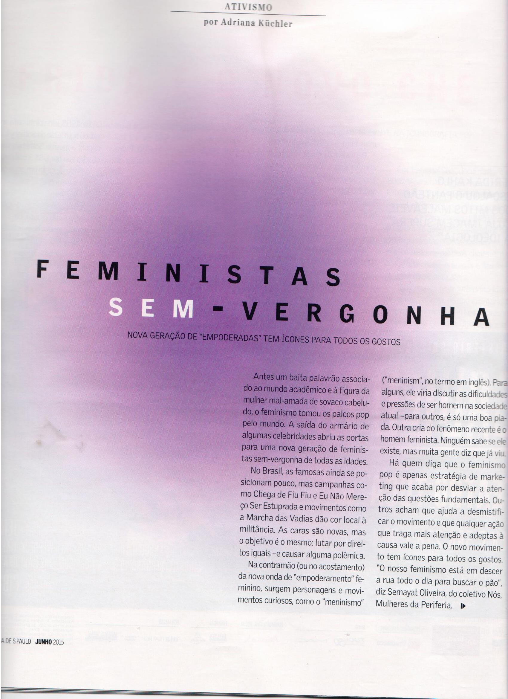 Nota: Todas as participantes têm críticas sobre a abordagem geral da reportagem. Sentimos que o tom “irônico” pode ser considerado, também, falta de tato e cuidado com a questão e que os conceitos poderiam ter sido explorados de uma forma mais profunda e contextualizada.