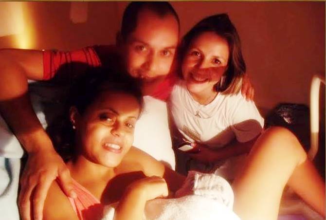 Toda a minha gestação foi mágica, fiz o Pré- Natal na Casa Angela e algumas consultas com o médico do plano de saúde. Comecei a ter contrações às 6h e liguei para a Kátia, que ainda não era doula, mas já estudava sobre o assunto, e foi ela quem me acompanhou. Por volta das 11h ela veio para minha casa e me orientou tomar banho, tomar chá, almoçar e só depois às 14h que fomos para a Casa Angela. Lá fizeram exames e fiquei em trabalho de parto, e por umas três horas fiquei fazendo exercícios ou no chuveiro. Durante todo o tempo, meu esposo, Michel, ficou comigo. O parto foi a meia luz e com uma música ambiente, escolhidas por mim. O ambiente ficou aconchegante e às 20h48 a Maria Milena nasceu.