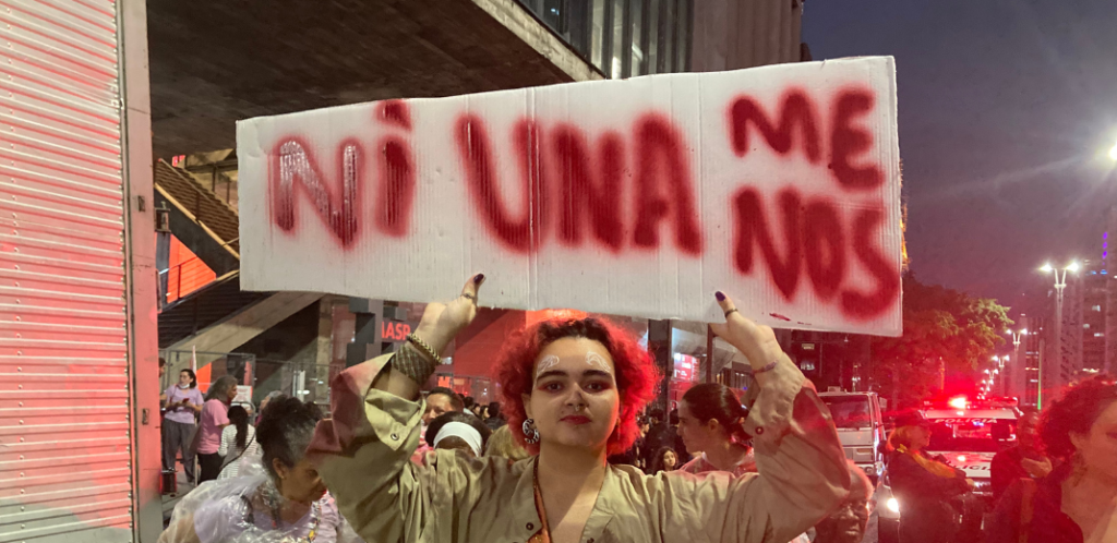 O cartaz, com os dizeres “Ni una menos”, significa “Nem uma a menos”, em tradução livre