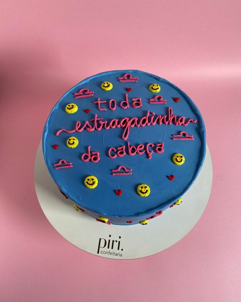 “Sagitariana, gostosa e estressada”, “enfim, divorciada”, “toda estragadinha da cabeça” e “aguentei muito e ainda fui simpática”. Essas são algumas das frases estampadas nos bolos feitos por Milene Oliveira, dona da Piri Confeitaria, localizada em Pirituba, zona noroeste da cidade de São Paulo (SP).